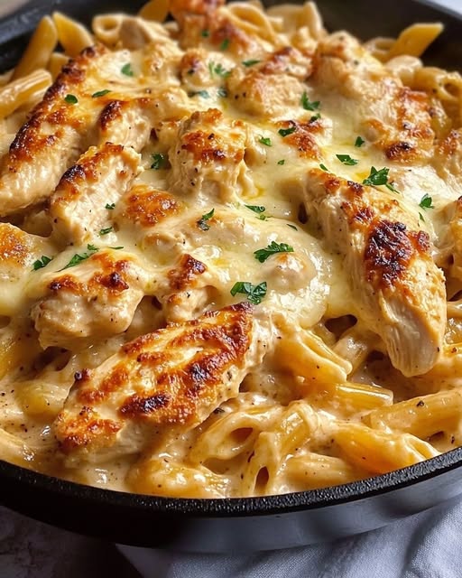 Few meals strike the perfect balance between comfort, simplicity, and flavor quite like the Cheesy Garlic Parmesan Chicken Pasta Skillet. This dish captures the heart of home cooking — a creamy, cheese-laden masterpiece where tender bites of seasoned chicken are swirled with penne and wrapped in a rich, garlicky sauce. Whether you’re preparing dinner for your family or hosting friends on a casual evening, this one-skillet wonder offers a gourmet experience without demanding hours in the kitchen. What makes it even more compelling is how effortlessly it comes together using pantry staples, all while packing a punch of nutrition and indulgent satisfaction.
