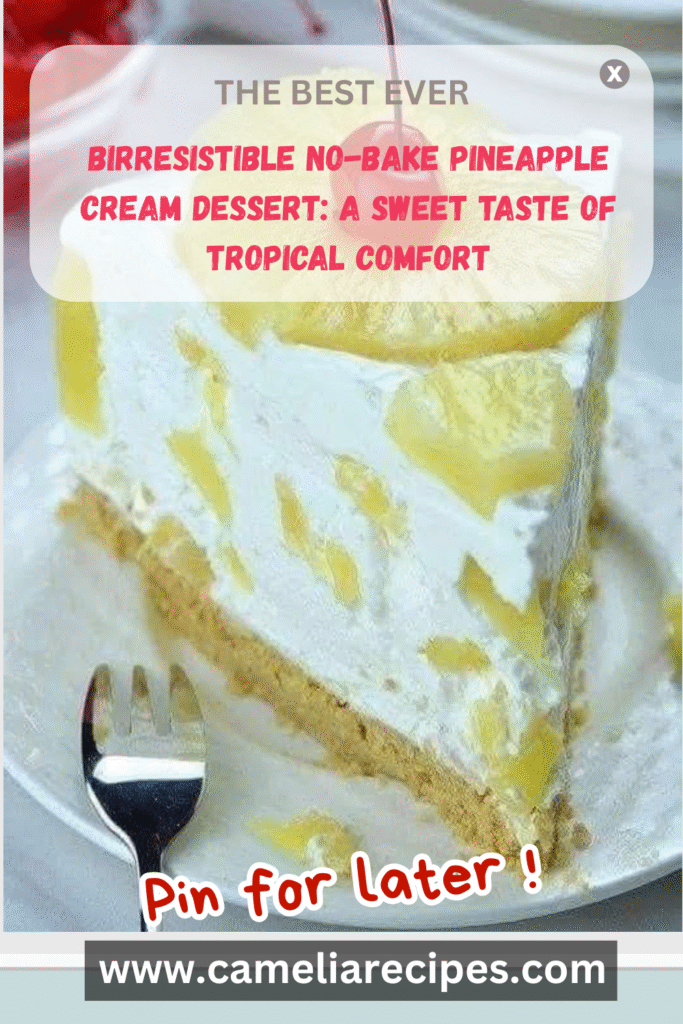No-bake pineapple cream dessert is more than a recipe—it’s a comforting, versatile, and universally loved treat. With minimal effort and maximum flavor, it serves as the perfect ending to a meal or a delightful surprise at potlucks and family gatherings. Its roots in vintage dessert traditions make it feel timeless, yet its tropical flair keeps it fresh and exciting.