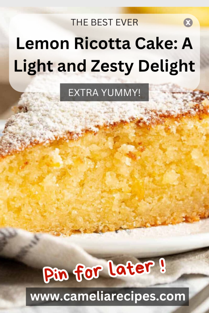 This Lemon Ricotta Cake is a celebration of light, zesty flavors, offering a dessert that’s both comforting and refreshing. Its tender crumb, creamy texture, and bright lemon notes create a harmonious blend that’s sure to impress. Whether you’re hosting a gathering, celebrating a special occasion, or simply craving something light and citrusy, this cake is sure to delight.